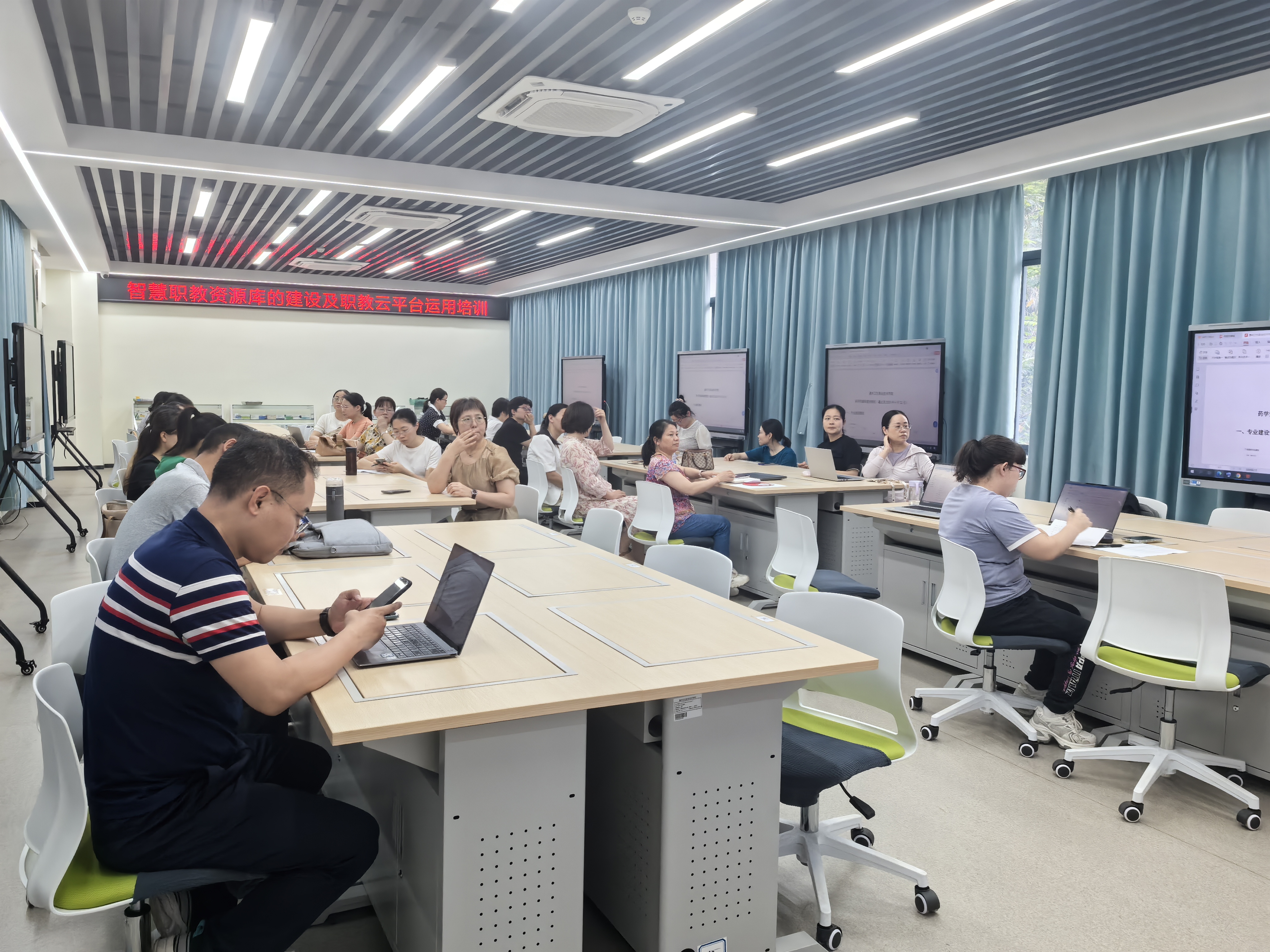 为紧跟教育技术发展趋势,进一步提升教师智慧课程建设水平,4月24日下午,我院在药学实训楼412虚拟仿真实训室组织开展“资源库的建设,职教云平台运用”专题培训活动。此次培训吸引了课程负责人、骨干教师及有资源建设计划的教师积极参与,培训由学校教务部副部长靖吉芳主持。
