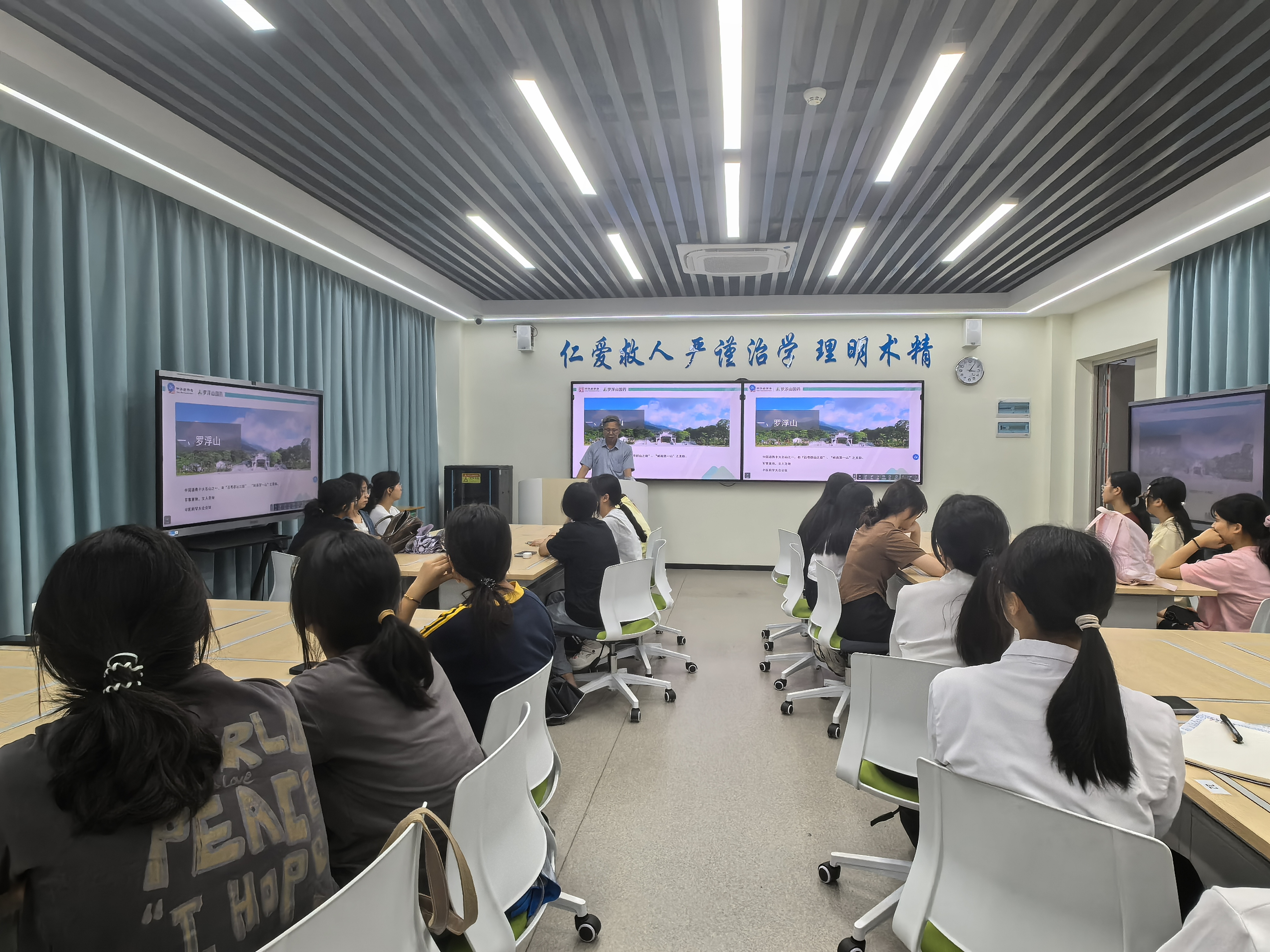 活动现场,廖志钟总工程师凭借深厚的专业底蕴和丰富的实践经验,为师生们带来一场精彩的知识盛宴。他详细讲述了罗浮山百草油与葛洪中医药文化的深厚渊源,从葛洪在罗浮山的行医济世传说,到罗浮山百草油配方的起源故事,生动展现了中医药文化的源远流长。