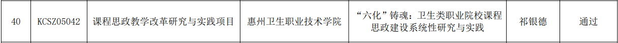喜报!我校2个项目通过广东省高职院校课程思政示范计划项目验收 时间:2025-12-18 作者: 游览: 字号:小中大 近日,广东省教育厅印发《关于公布2025年度省高职院校课程思政示范计划项目验收结果的通知》,我校祁银德校长、梁可主任主持的项目凭借扎实的建设基础、显著的教学成效、鲜明的育人特色,顺利通过验收,彰显了学校在课程思政建设中的显著成效。