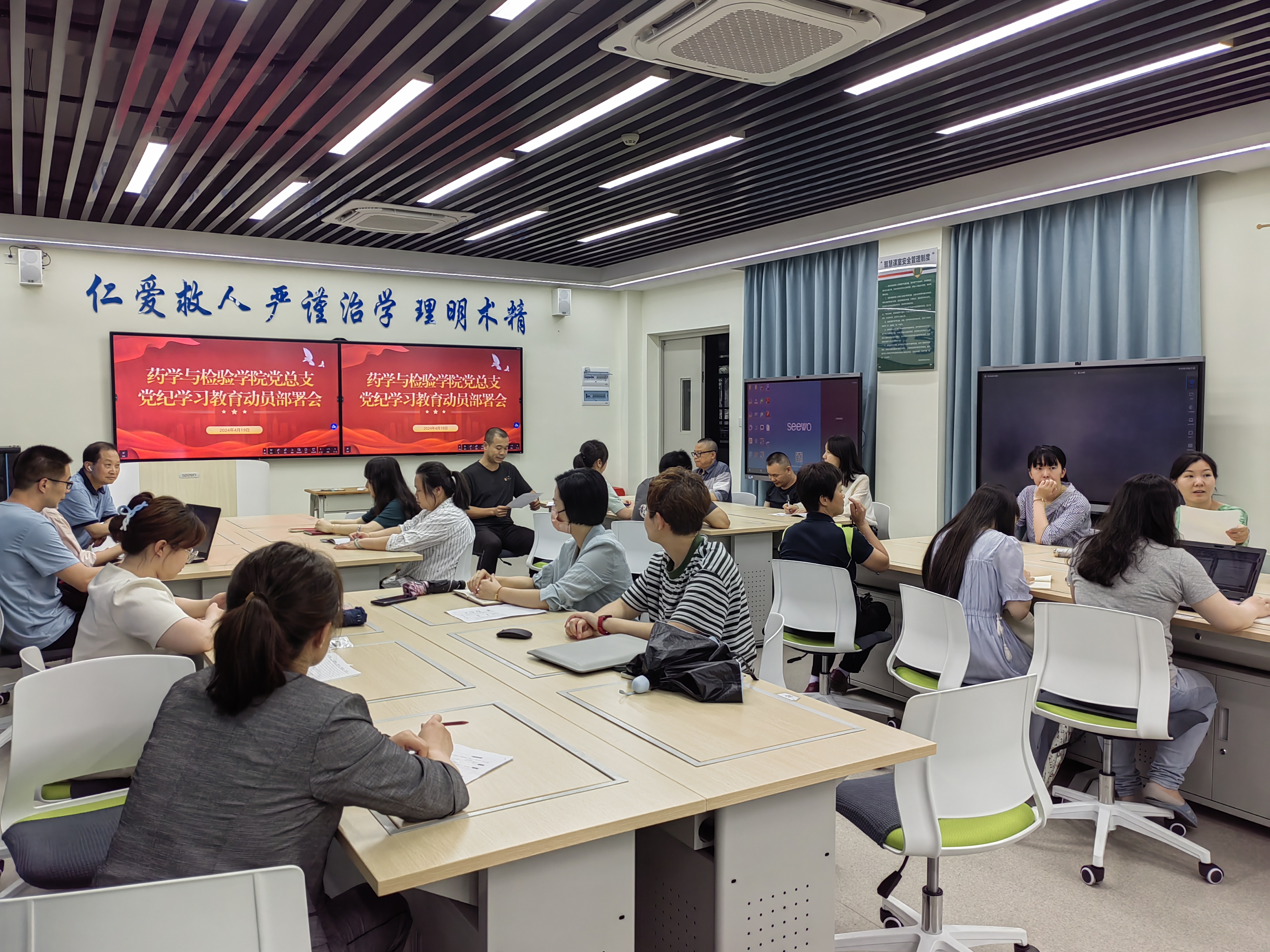 4月19日下午,药检学院党总支在实训楼412举行药检学院党纪学习教育动员部署会,本次会议由党总支副书记胡立成主持。