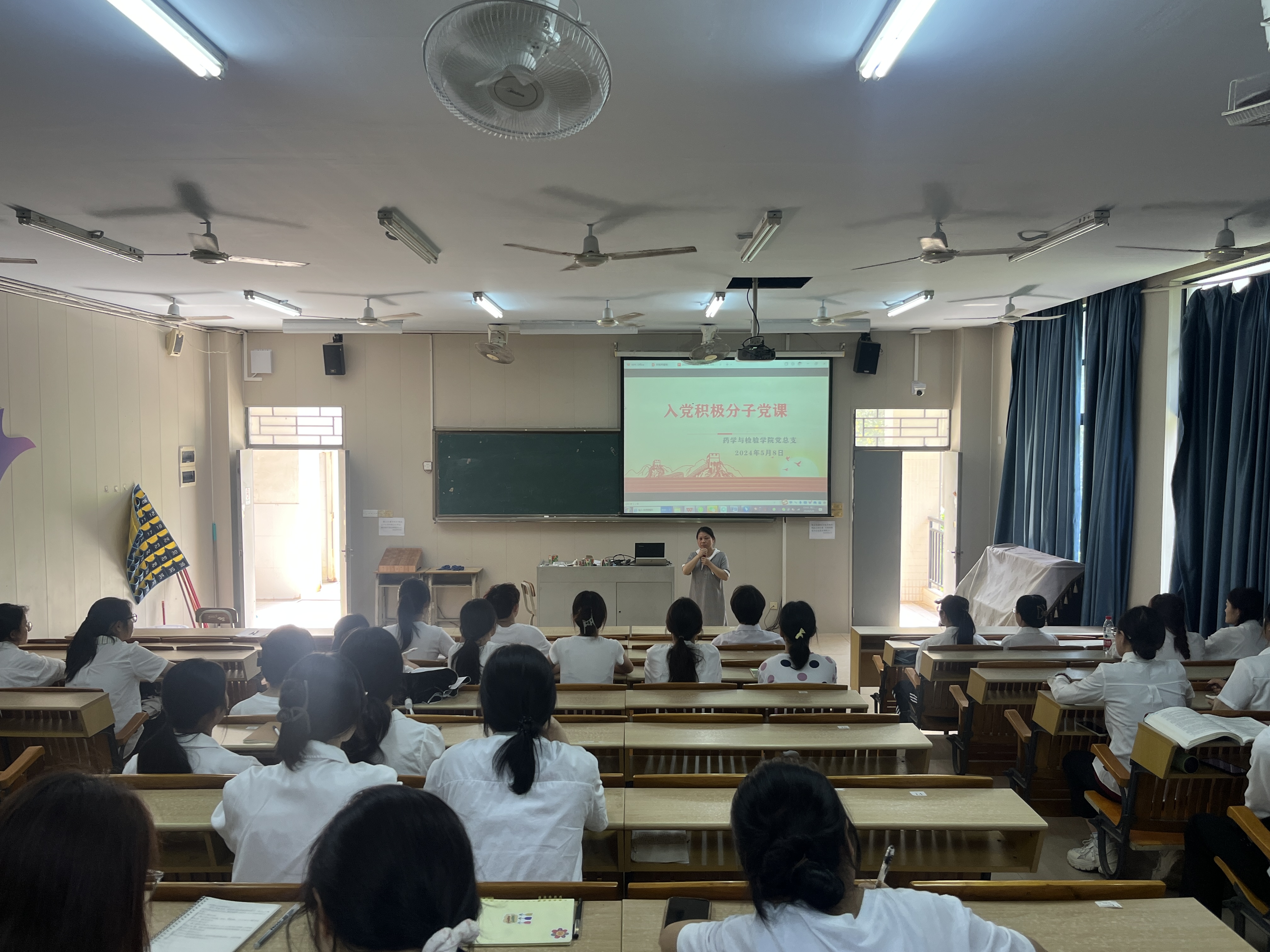 我院“药检党建·先锋大讲堂”开讲 时间:2024-05-09 作者: 游览: 字号:小中大 2024年5月8日下午,药检学院在医技楼1101课室开展20223级入党积极分子党课,党课由我院党总支纪检委员王富英同志主讲,题为《从严治党永远在路上,党的自我革命永远在路上》。王富英同志结合目前全党正在开展的党纪学习教育,深入浅出为同学们分析了为什么要开展党纪学习教育?为什么要从严治党?如何从严治党? 最后,王富英同志希望入党积极分子们,积极学习党史知识,进一步端正入党动机,在学习工作中,积极带头、甘于奉献、成就自己、助力学院发展。