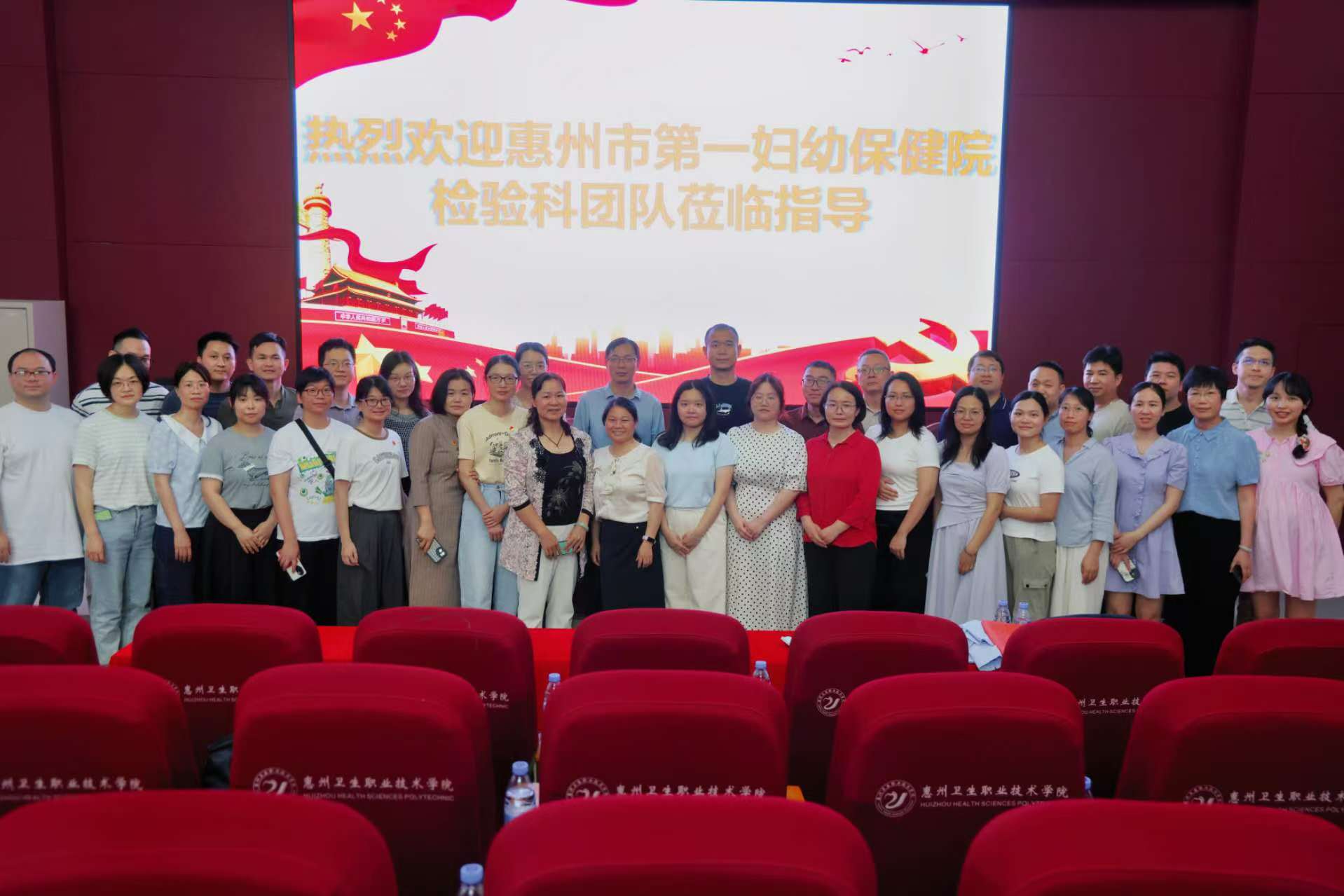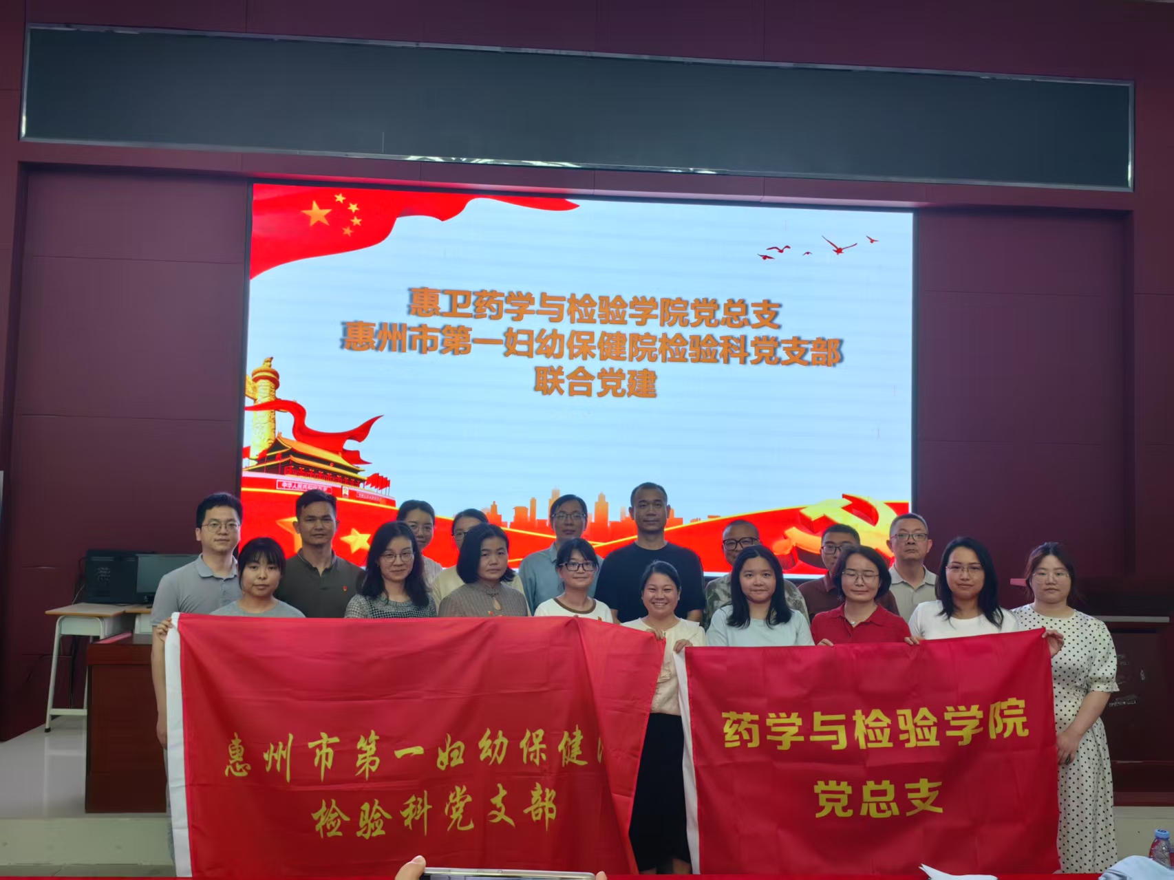 为切实提升同学们的临床实践应用能力,搭建学校与行业深度交流的桥梁,4月23日下午,药学与检验学院党总支携手惠州市第一妇幼保健院检验科党支部,共同开展了一场别开生面的联合党建活动。此次活动中,惠州市第一妇幼保健院检验科在科主任严伟玲、检验科支部书记张育超的带领下,一行约二十人来到学院。药学与检验学院院长徐英辉、药检学院党总支副书记胡立成、检验技术党支部书记王富英及部分党员同志热情接待,并全程参与了此次交流活动。
