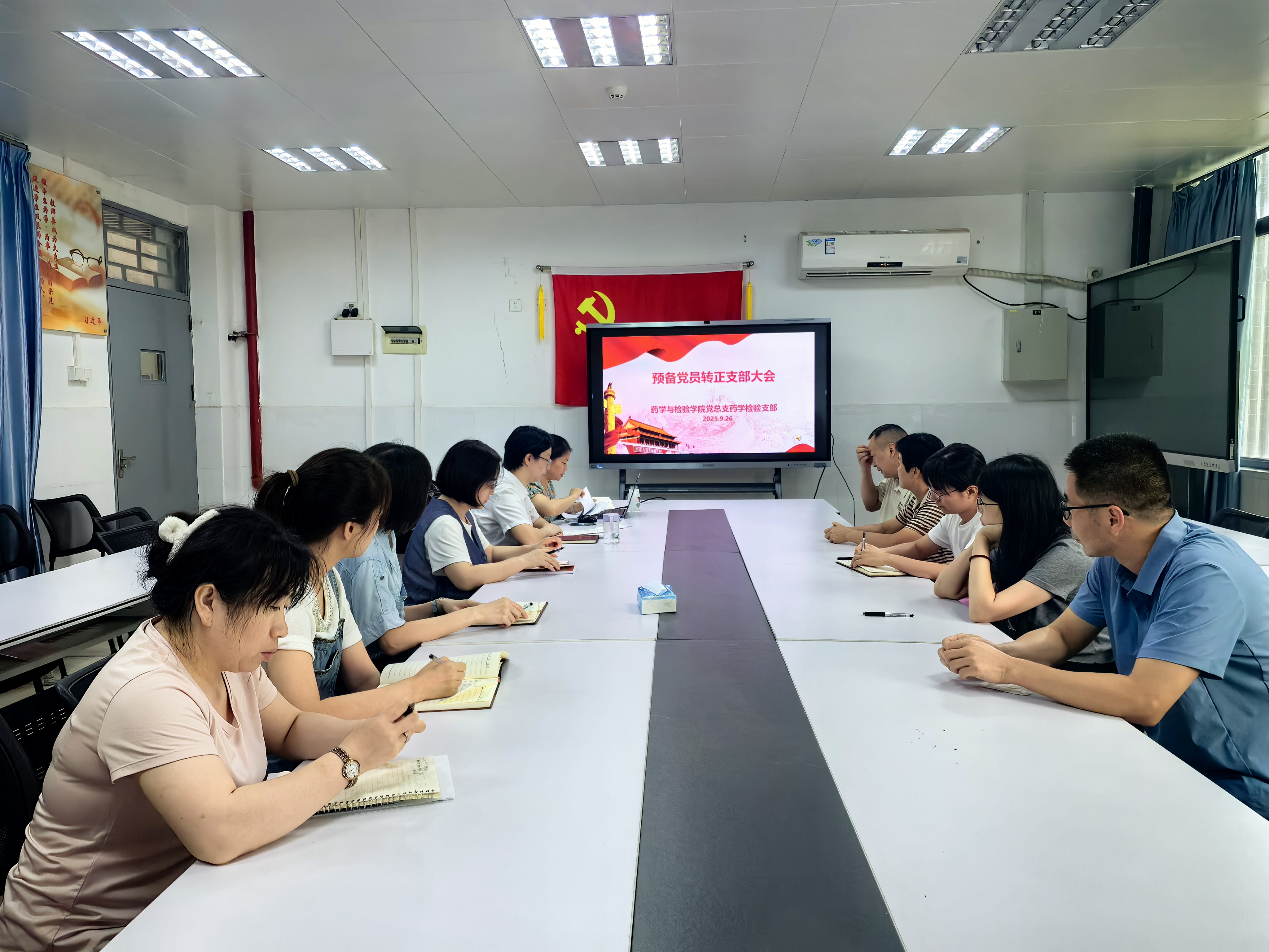 近日,我院药学检验党支部与学生党支部顺利召开党员大会,圆满完成预备党员转正工作。