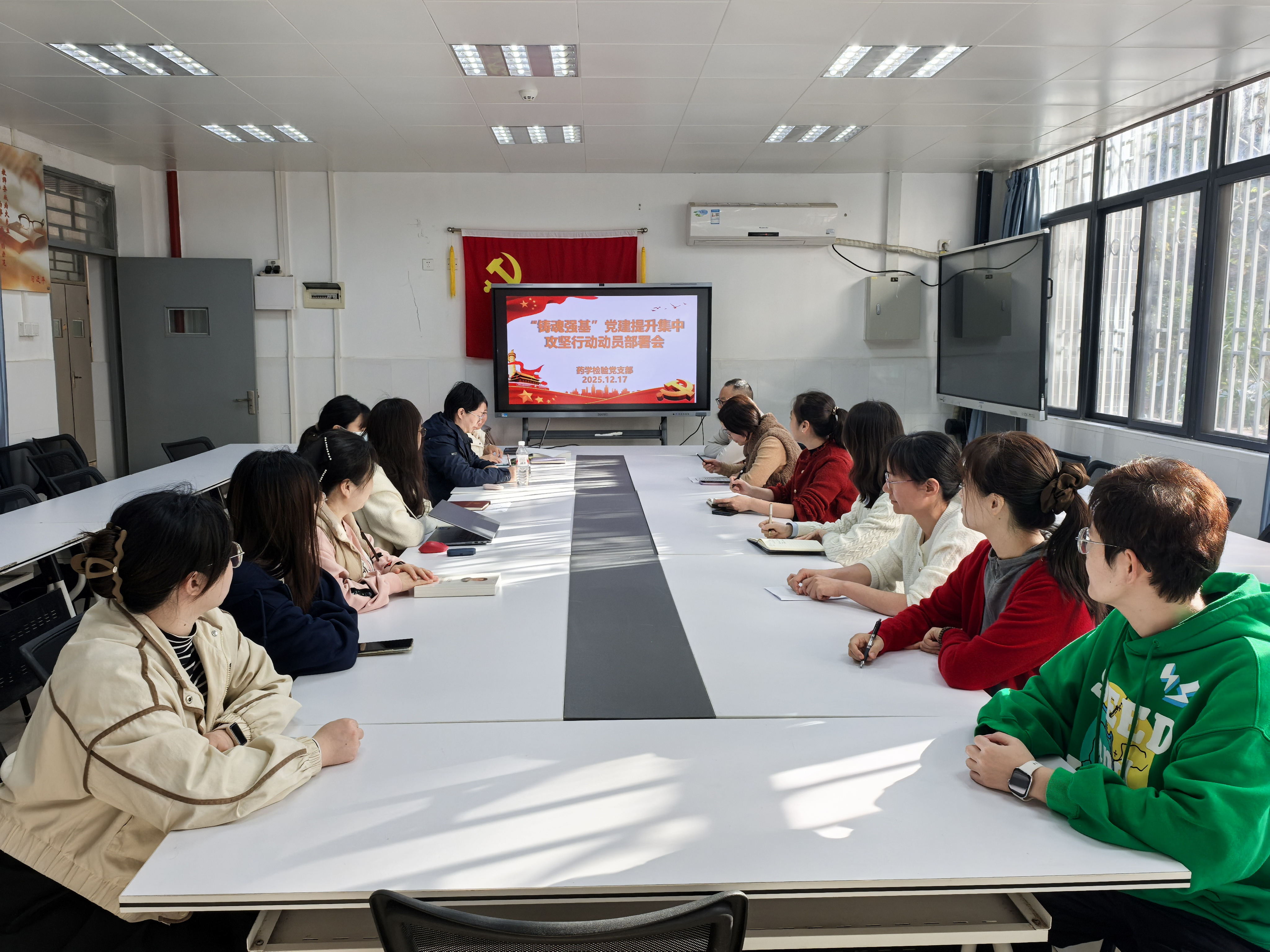 会议传达了惠州市教育系统“铸魂强基”党建提升集中攻坚行动工作方案、惠州卫生职业技术学院“铸魂强基”党建提升集中攻坚任务落实清单。药学与检验学院“铸魂强基”党建提升集中攻坚行动实施方案。 本支部依据各级行动方案,结合支部实际,对全体支部党员进行了任务部署和动员。活动从2025年12月开始,大约于2026年5月结束。以期达到“基层党组织“六个进一步提升”的工作目标,发挥党员先锋模范作用,赋能学院教育高质量发展。