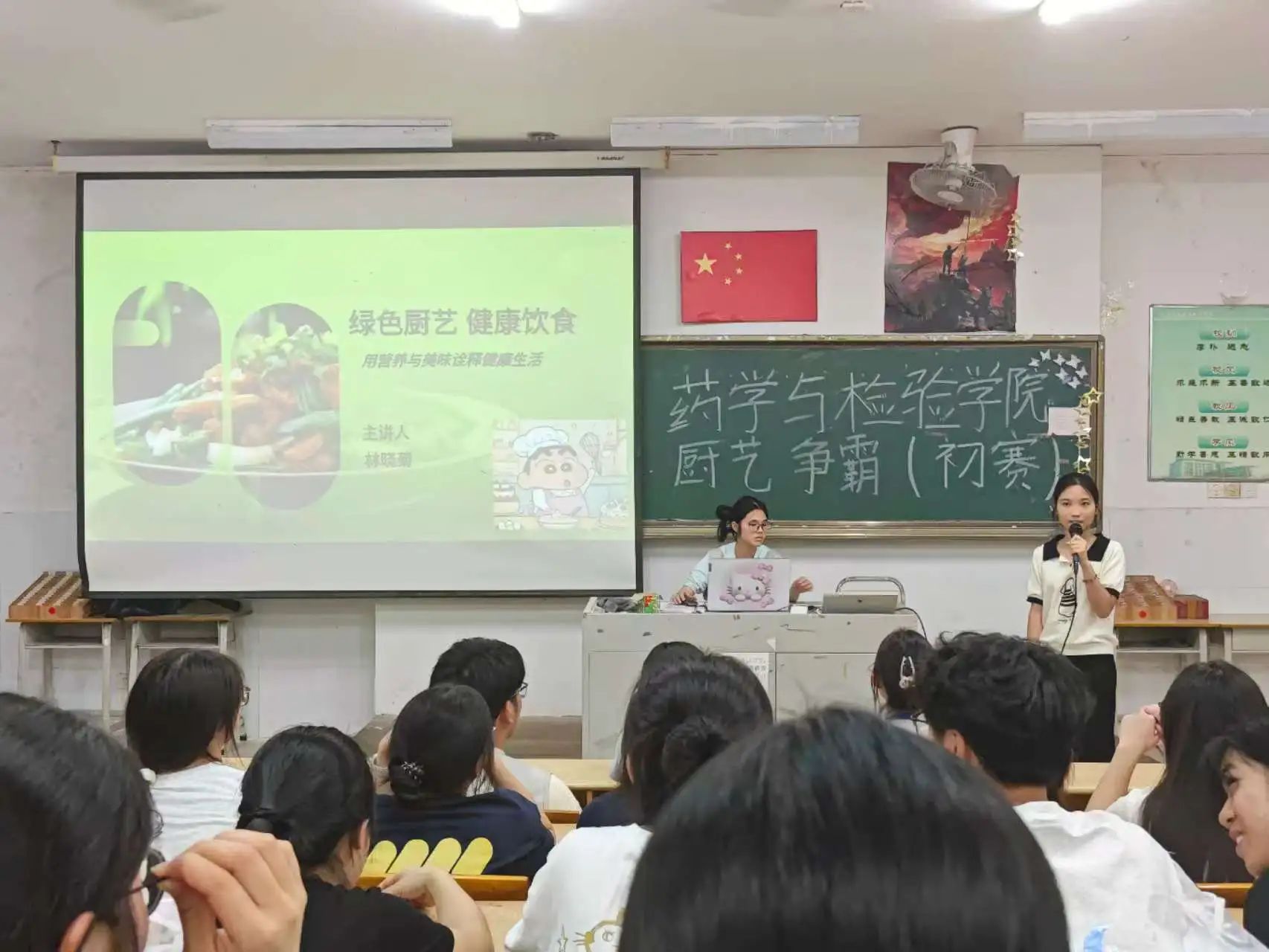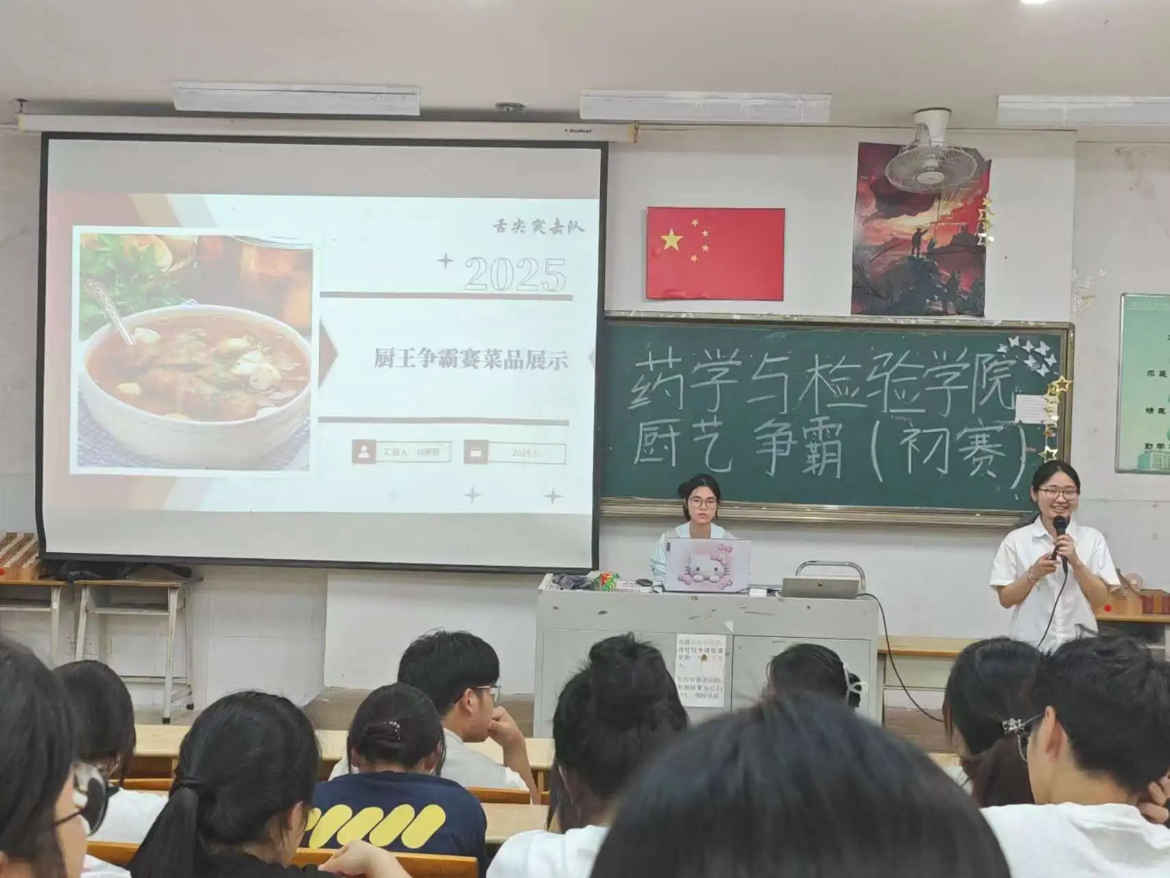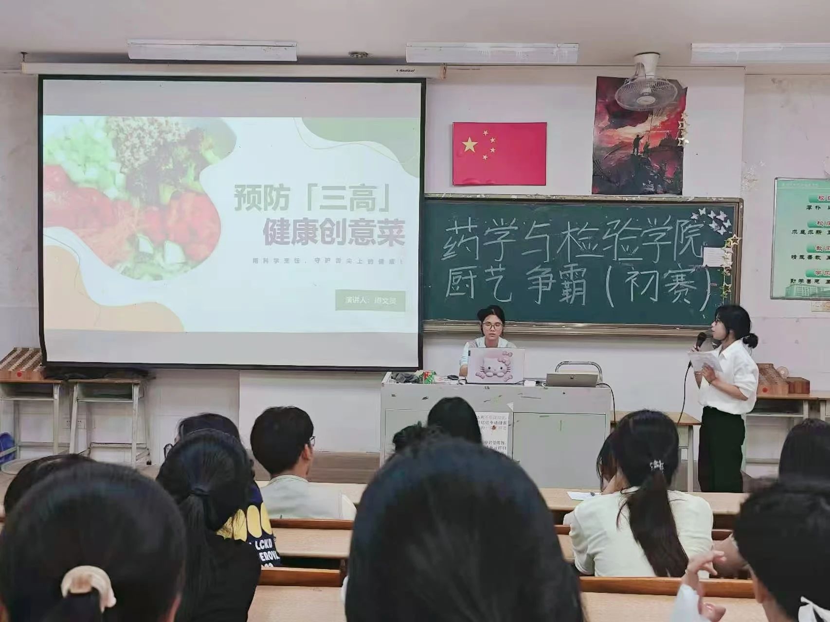 为了丰富校园文化生活,提高同学们的厨艺技能,为广大烹饪爱好者提供一个展示自我、交流技艺的平台,同时弘扬中华美食文化及饮食健康,锻炼学生的动手能力,营造良好的生活和学习氛围。我校药学与检验学院自律委员会于2025年5月22日晚在阶梯教室2101成功举办“绿色厨艺,健康饮食”院赛。