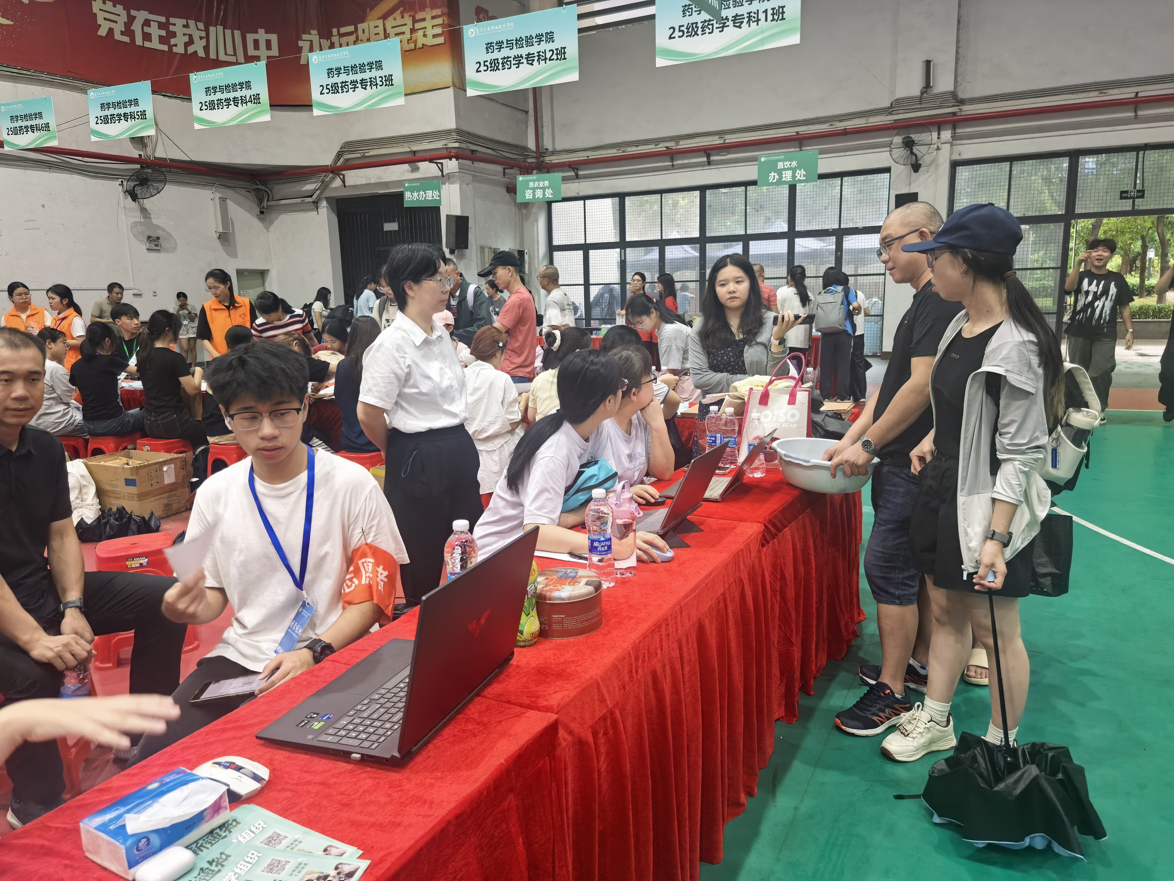 9月20日至21日,药检学院2025级新生入学报到如期进行。此次迎新,恰逢今年第17号台风“米娜”正面袭击我市,给新生接待工作带来很多不确定因素。但2025级辅导员班主任协同新生班级助手,不畏风雨,通过前期摸排,精准对接,热情服务,很好地完成了各项迎新工作。